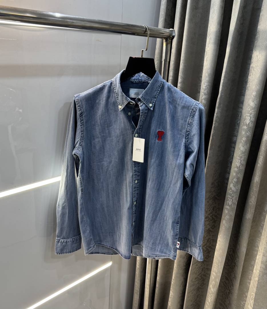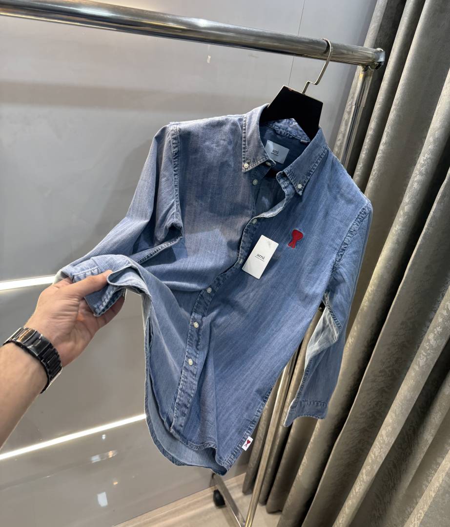 • Ami Paris Mid Blue Embroidery Logo Premium Denim Shirt