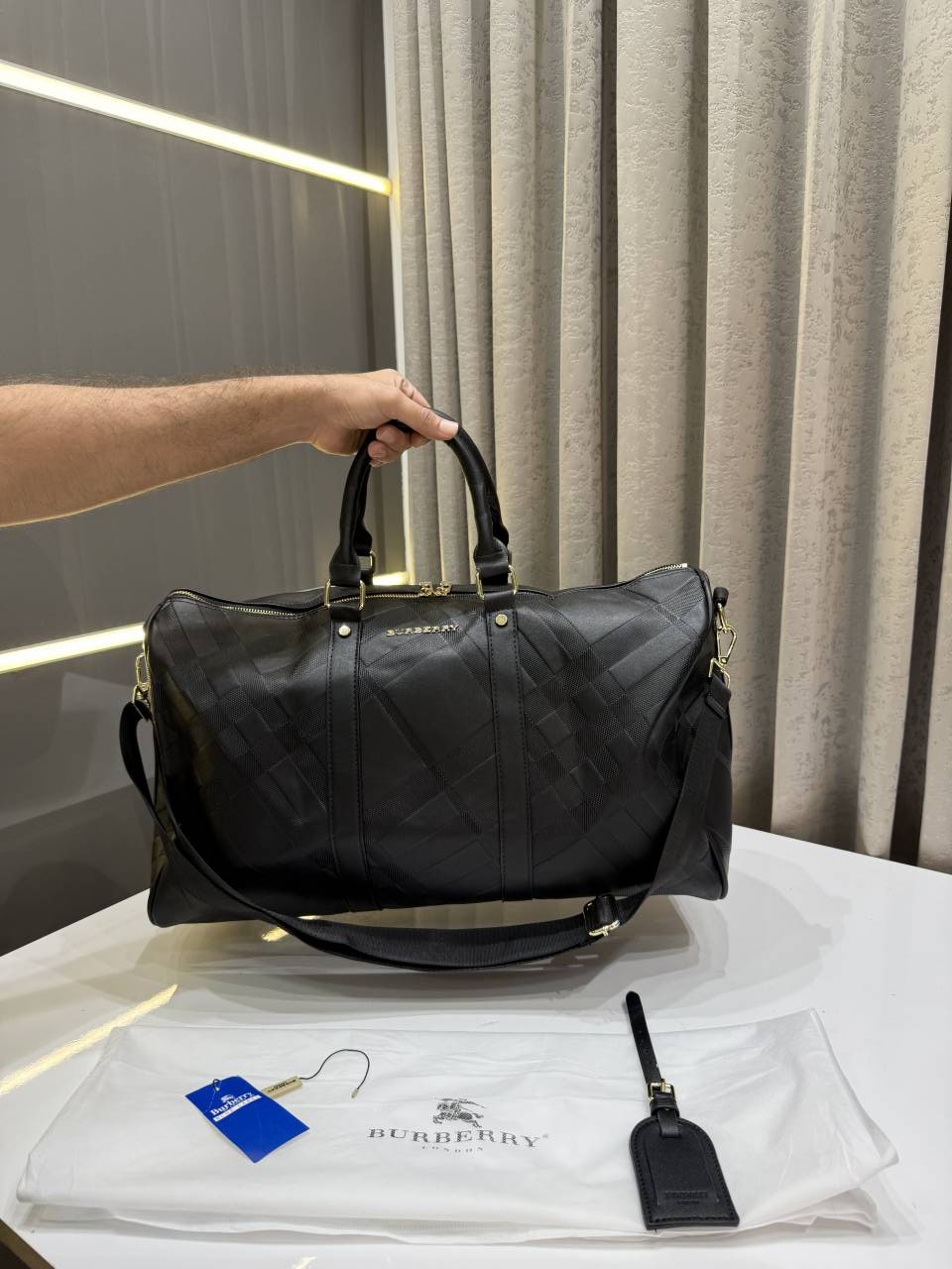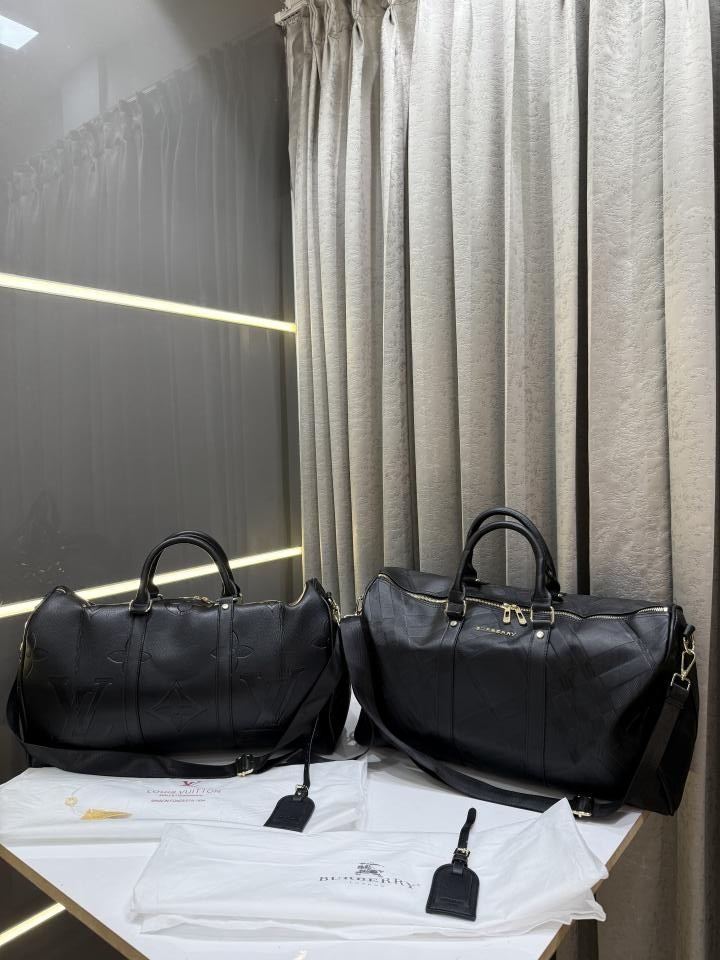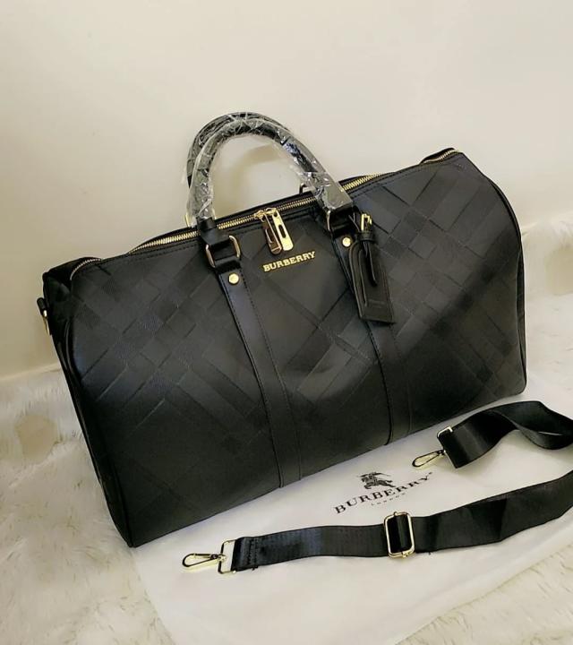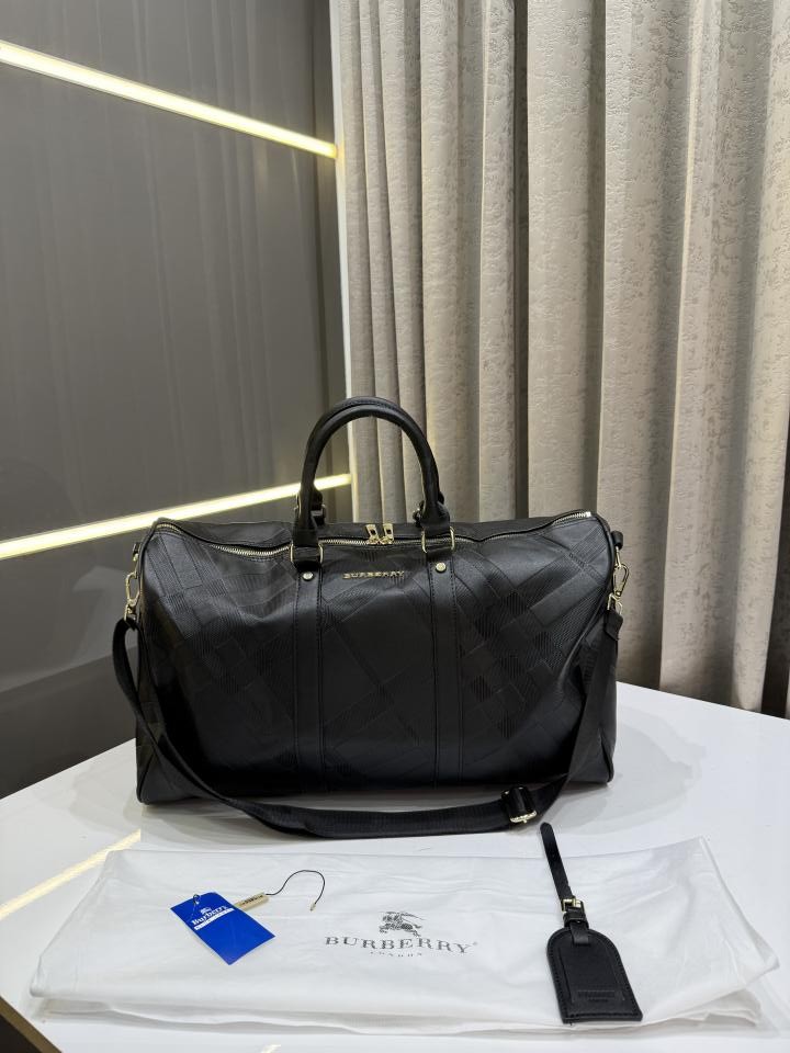 BURBERR.Y KEEPALL BANDOURLIERE MONOGRAM PREMIUM BLACK LEATHER DUFFLE BAG CLASSIC UNISEX