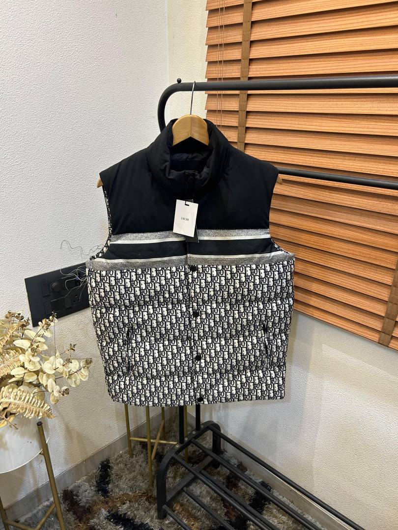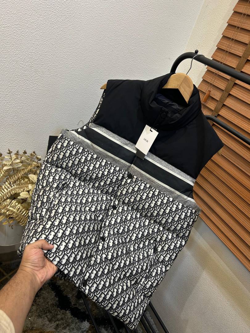 Christian Dio_r Black Monogram Print Imported Jacquard Half Puffer Jacket