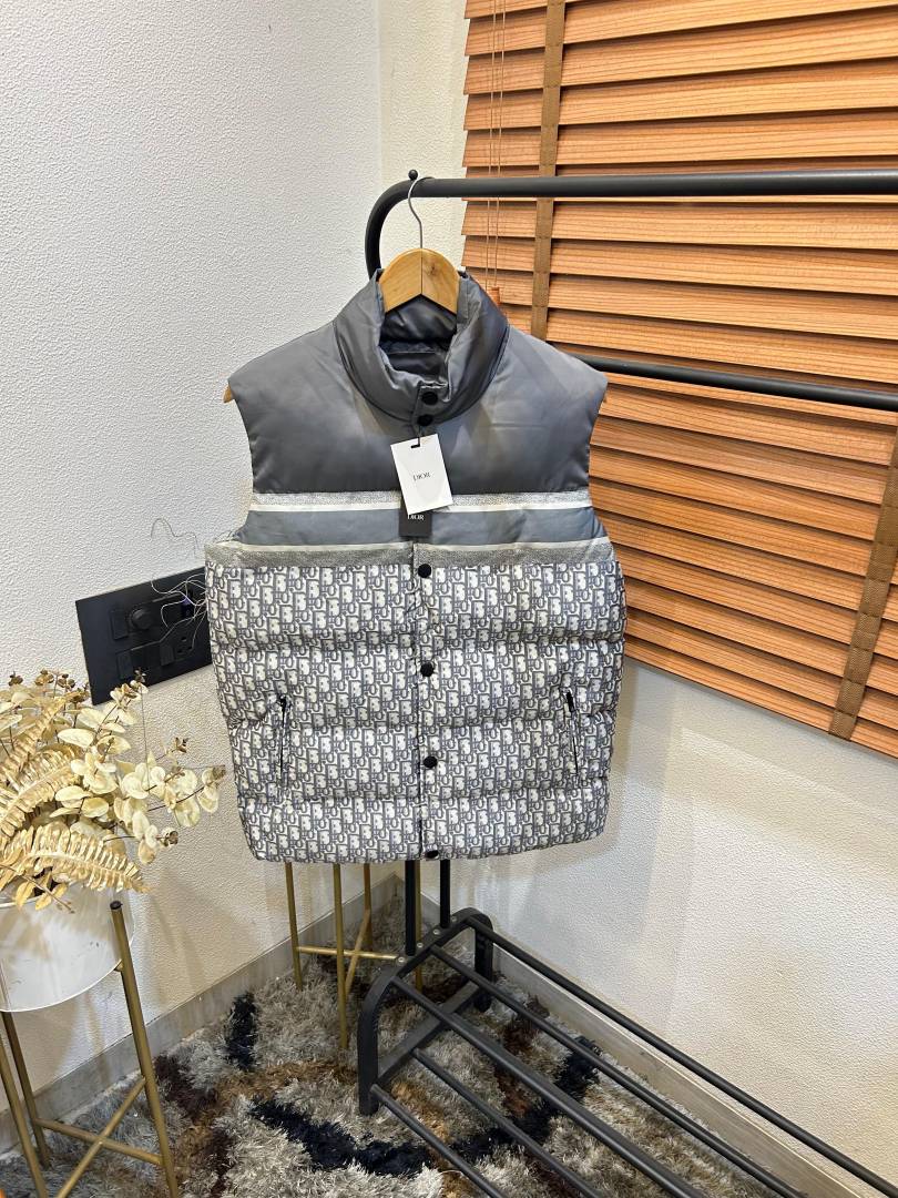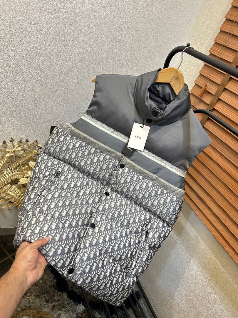 Christian Dio_r Gray Monogram Print Imported Jacquard Half Puffer Jacket