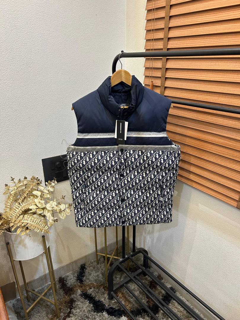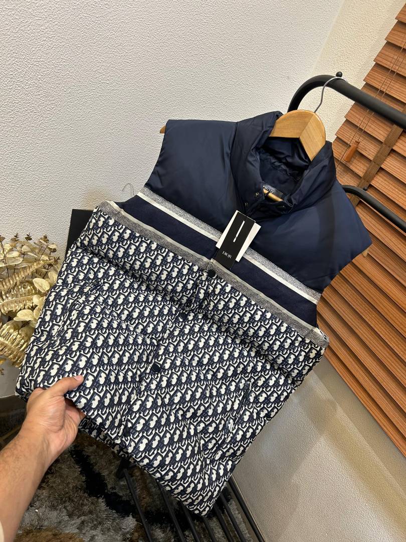 Christian Dio_r Navy Blue Monogram Print Imported Jacquard Half Puffer Jacket