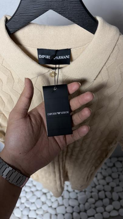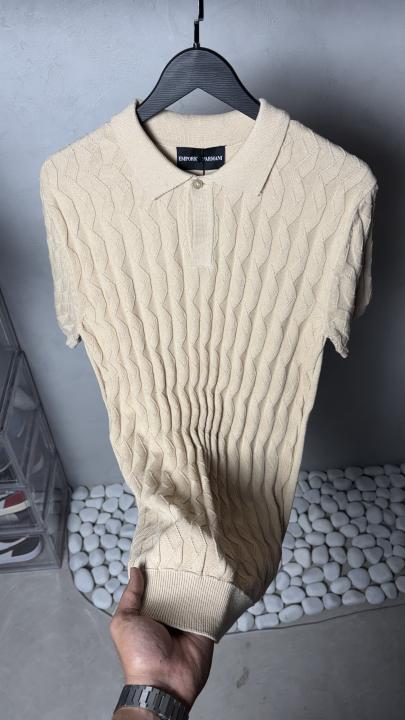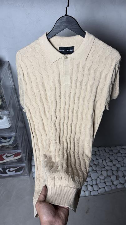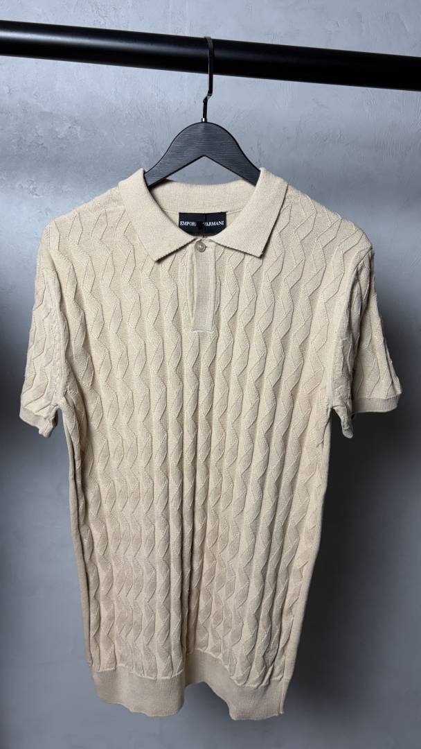 Emporio Arman_i Textured Knit Polo T-Shirt Beige 1127