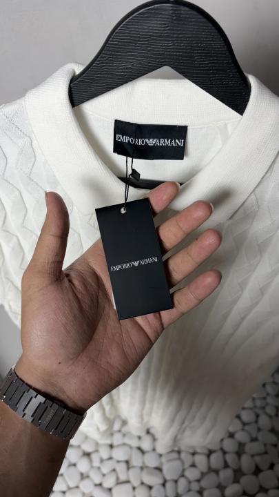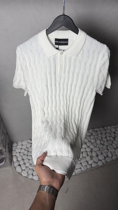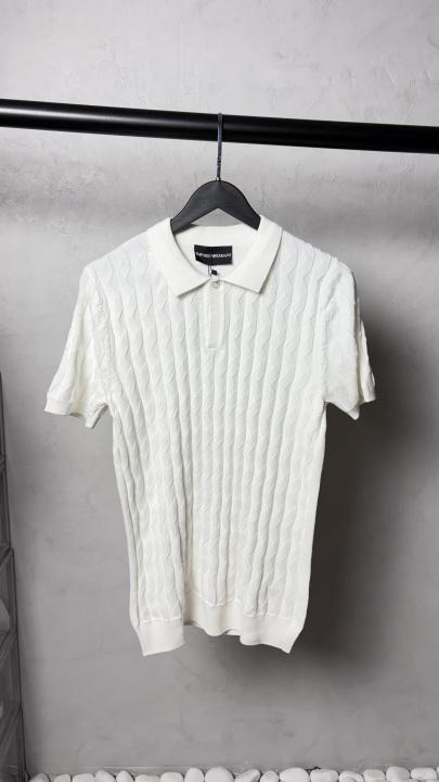 Emporio Arman_i Textured Knit Polo T-Shirt Classic White 1126