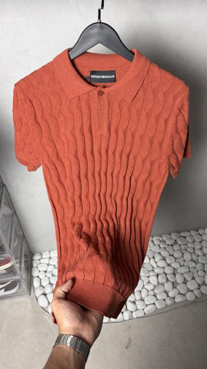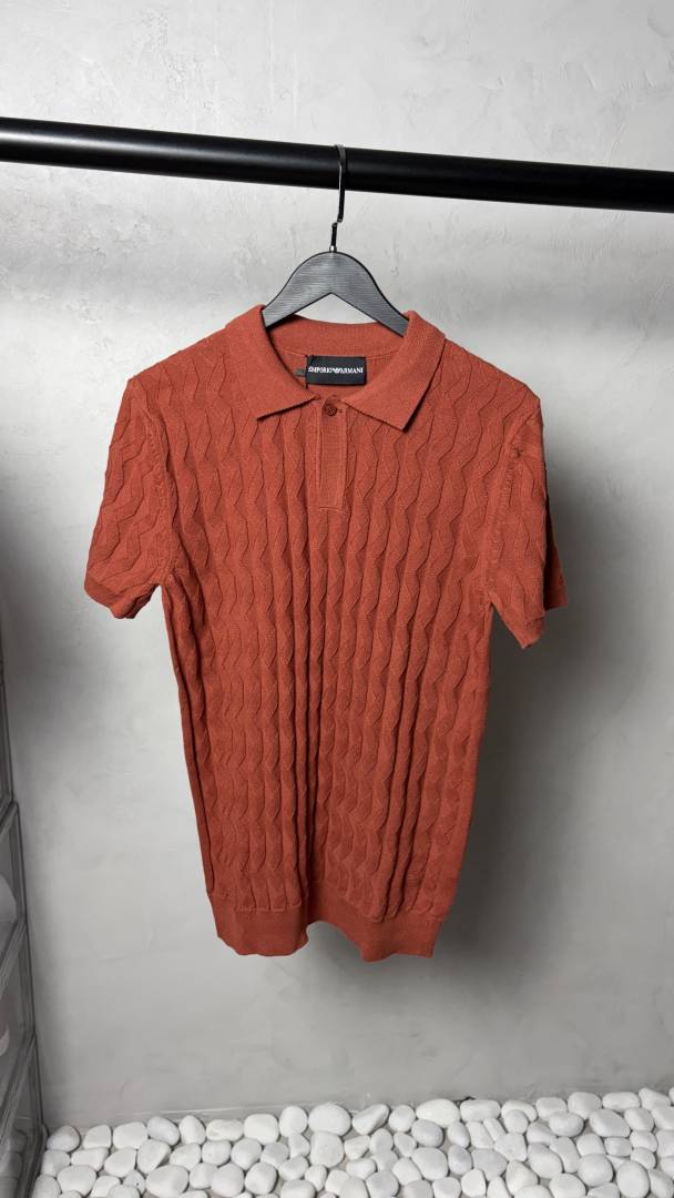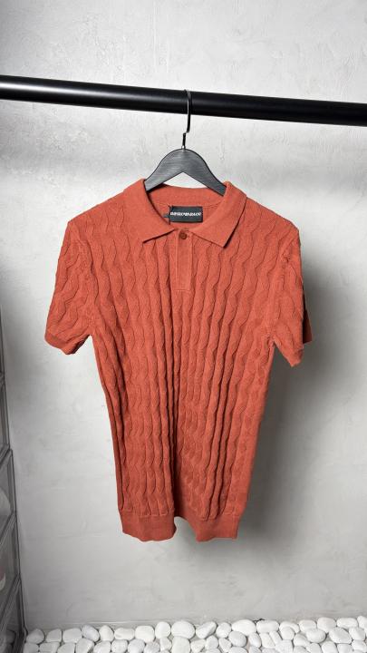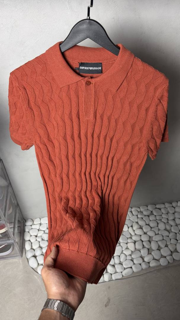 Emporio Arman_i Textured Knit polo T-shirt Rust Orange 1128