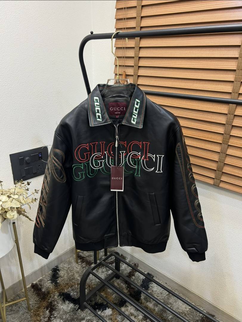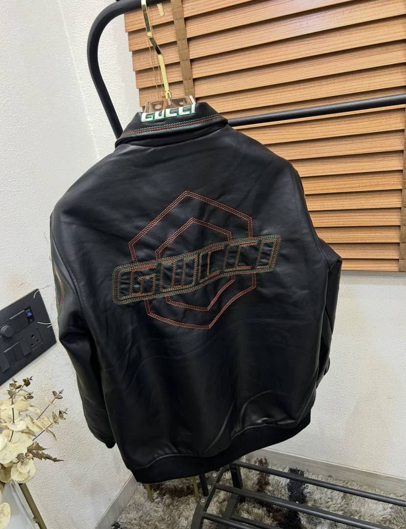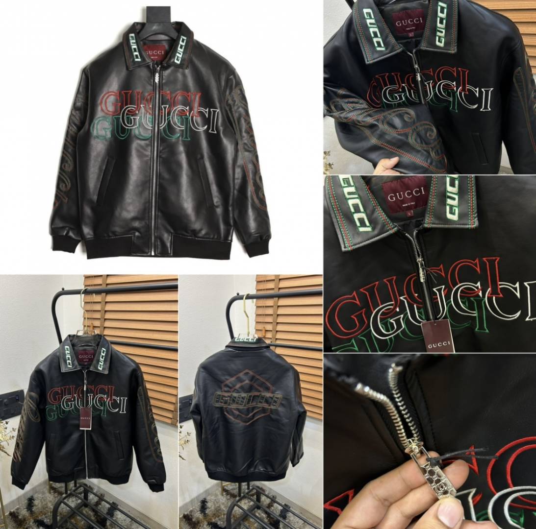 Gucc_i Embroidered Exclusive Imported Premium Leather Designer Jacket (DN 614)