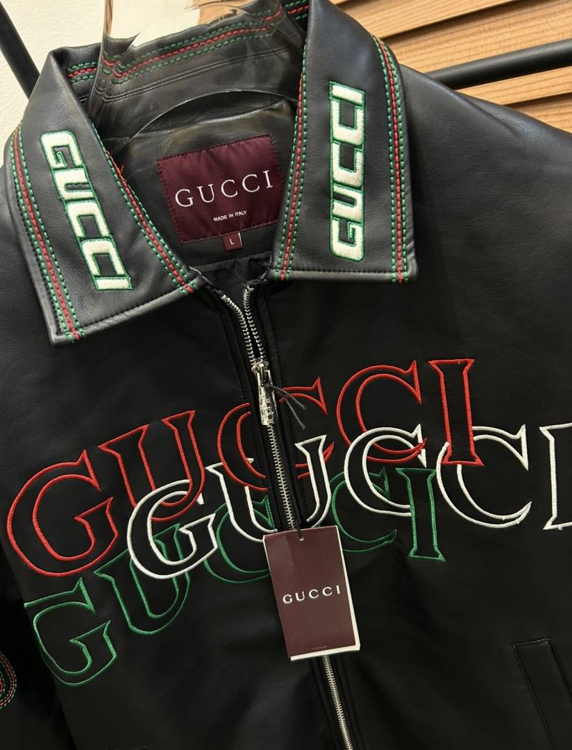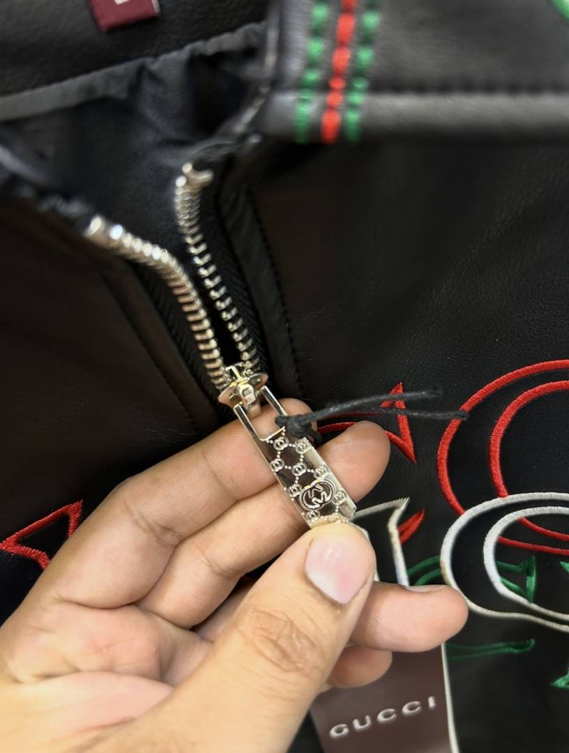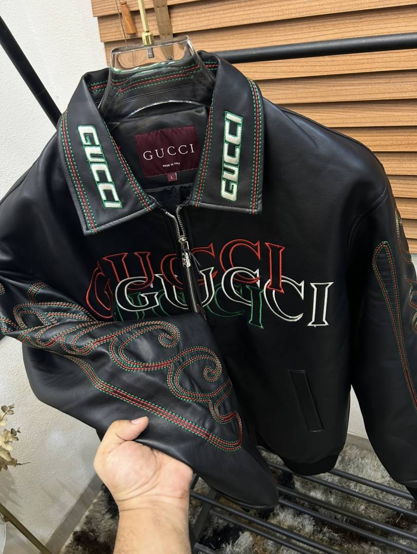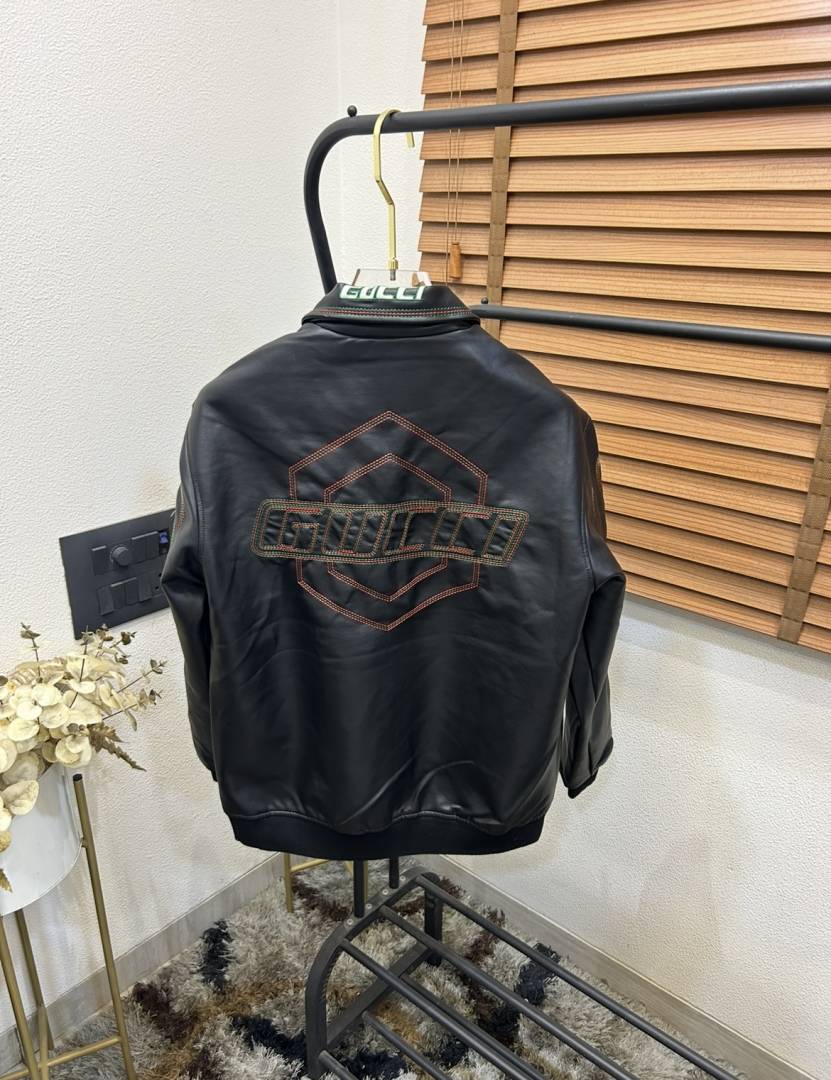 Gucc_i Embroidered Exclusive Imported Premium Leather Designer Jacket (DN 614)