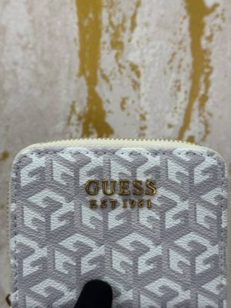 GUESS TEXTURED ZIPPY WALLET WITH OG BOX AND DUST BAG GXD005 WHITE