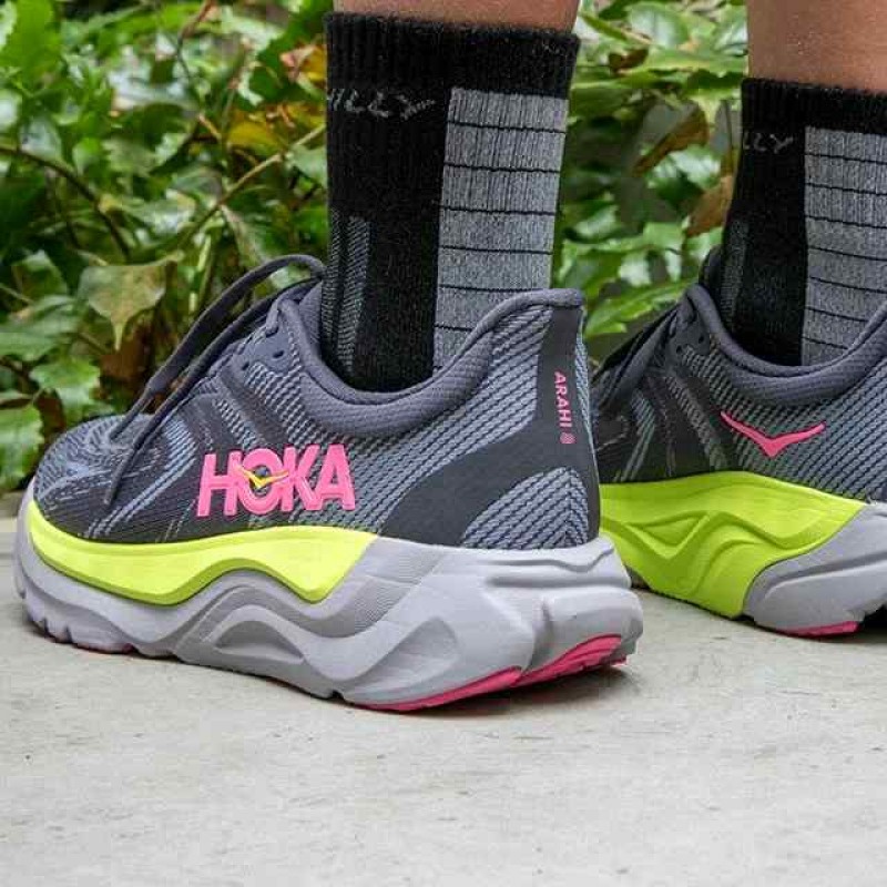 • Hoka Arahi 8 Charcoal Grey-Yellow-Rose Mens shoes