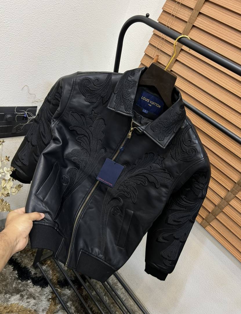 Loui_s Vuitton Embroidered Turkey Imported Premium 100% Pure Leather Jacket