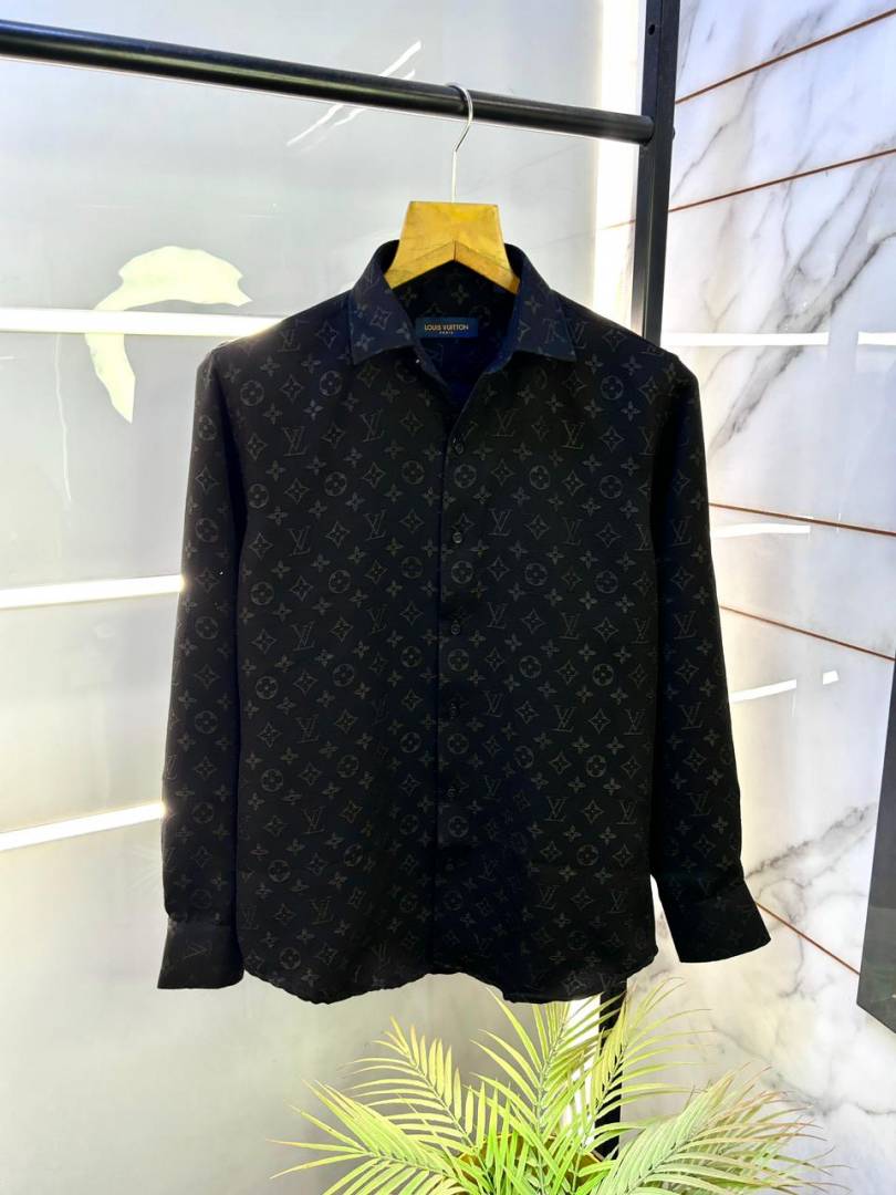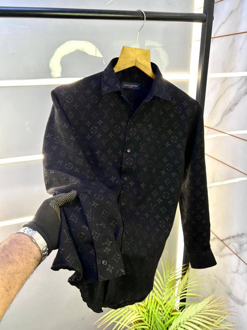 Louis_Vuitton Monogram Allover Print Premium Black Shirt With Brand Box Packing and Carry bag F3139-BL