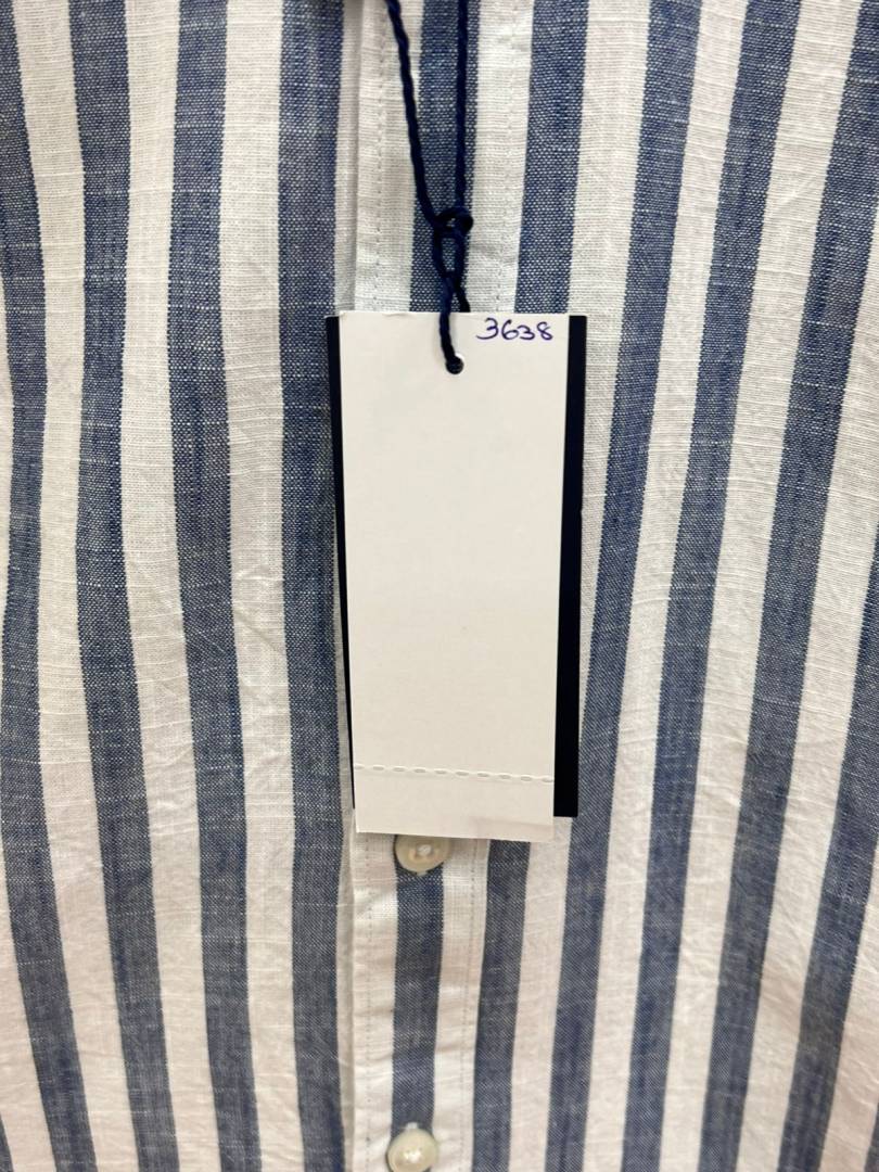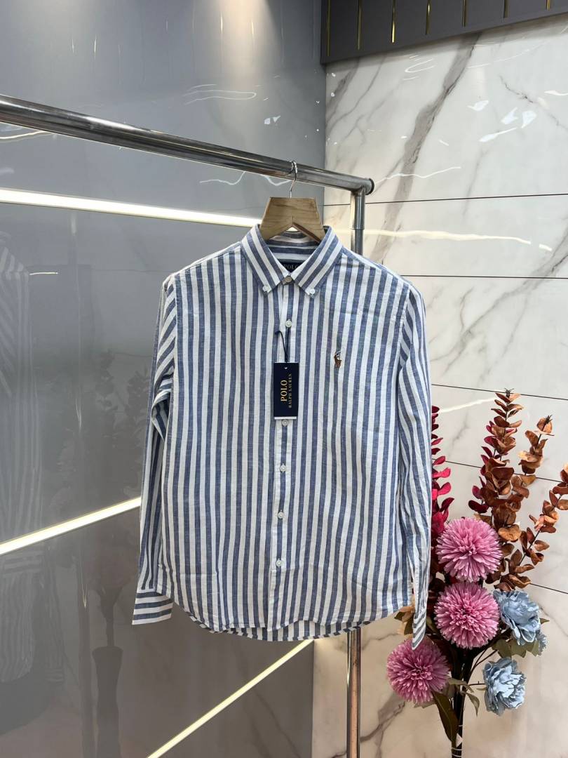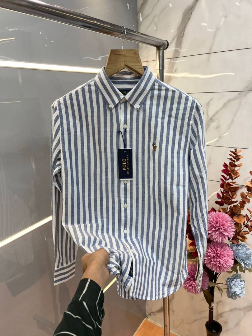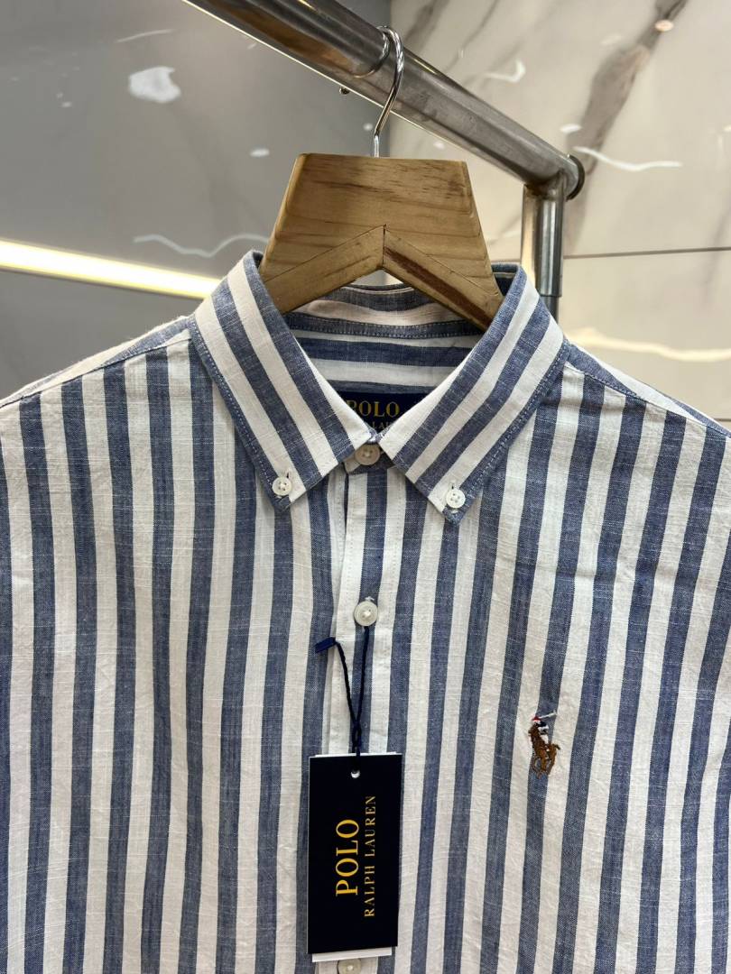 Ralph Laure n Blue Premium Imported Cotton Linen Fabric Shirt with Strips and Embroidered Logo 3638