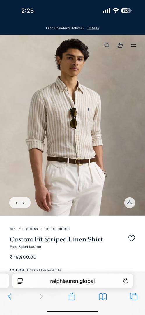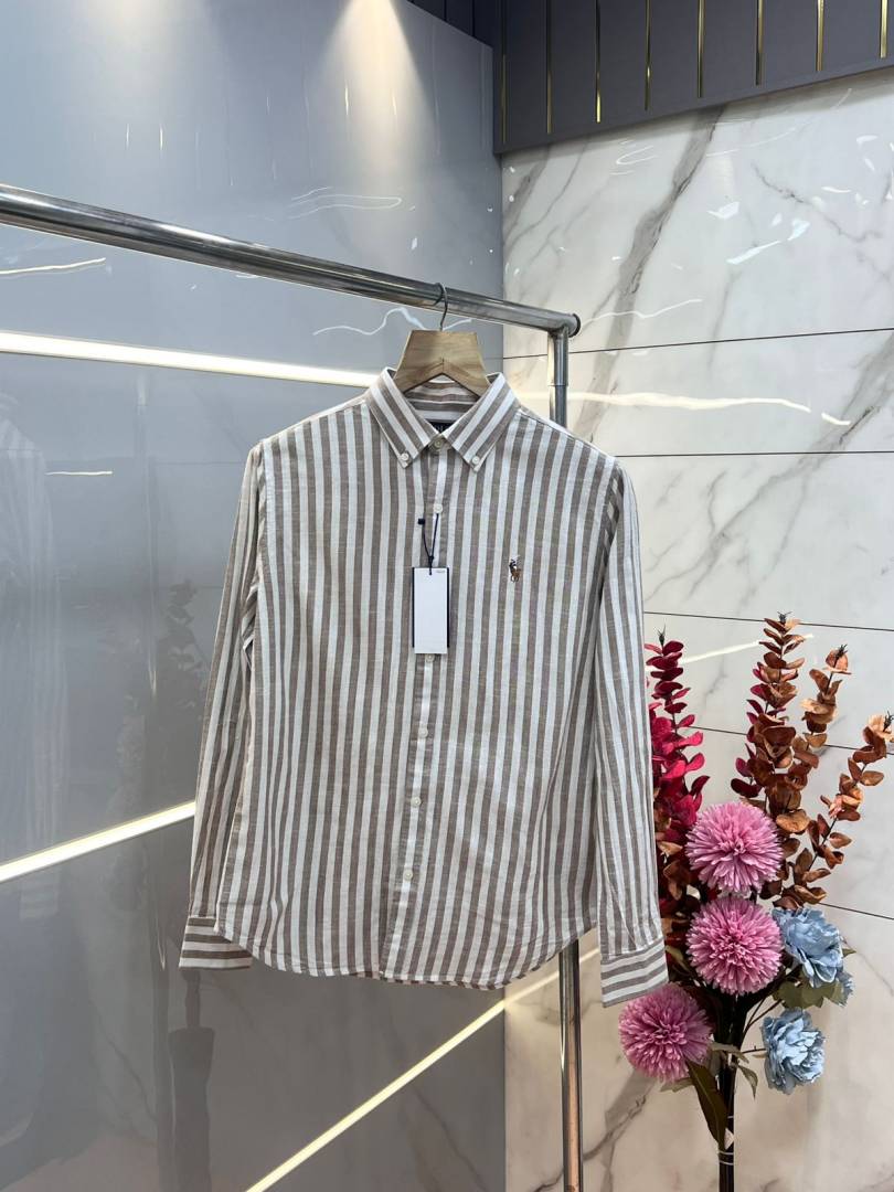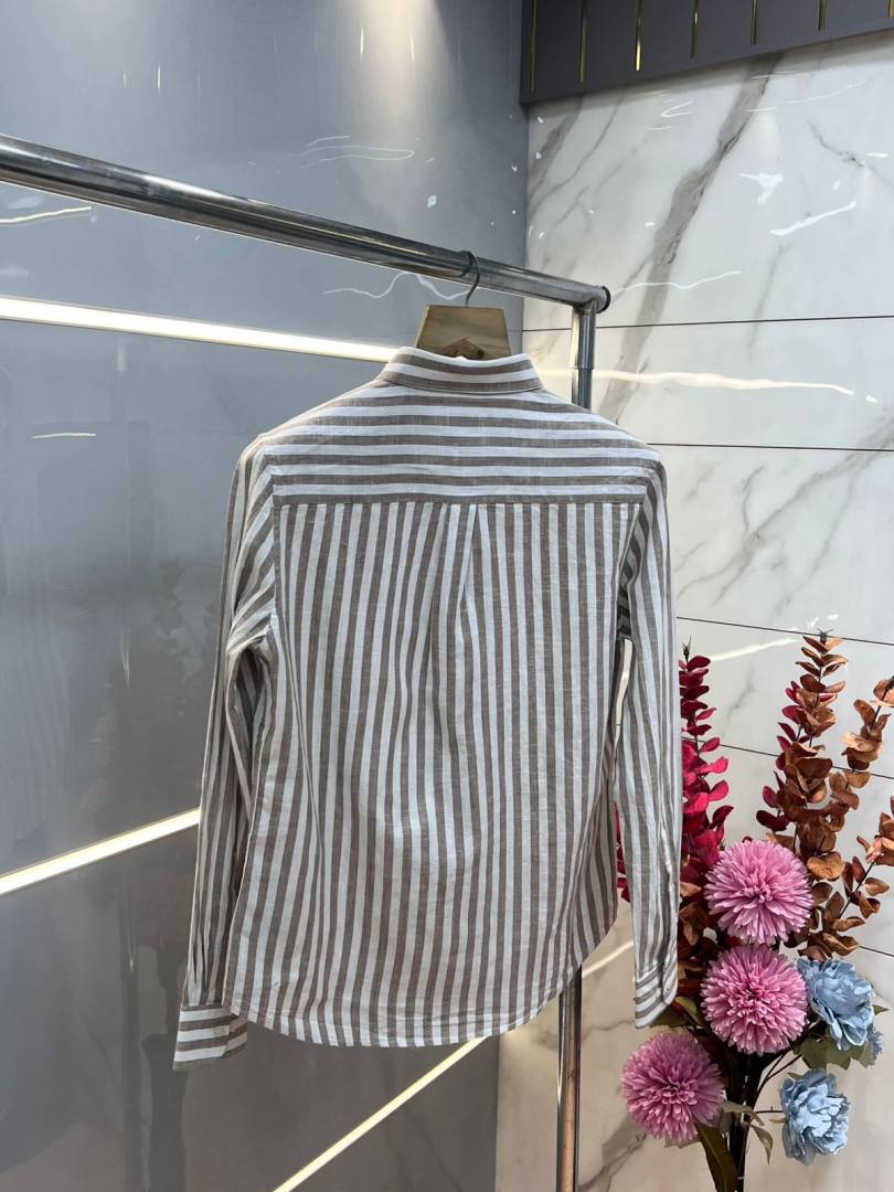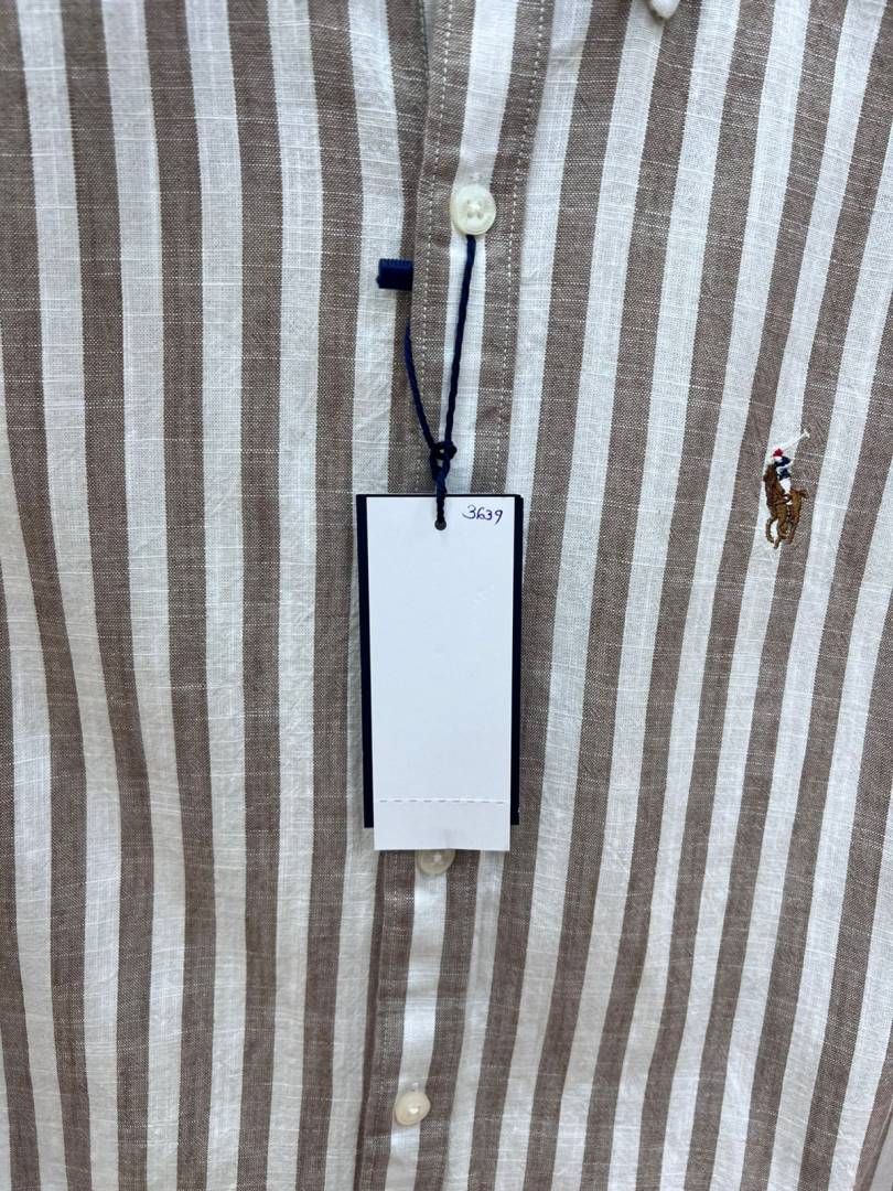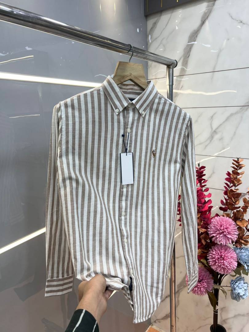 Ralph Laure n Brown Premium Imported Cotton Linen Fabric Shirt with Strips and Embroidered Logo 3639