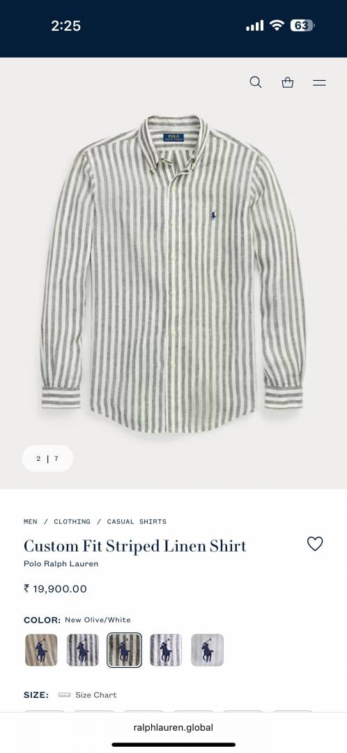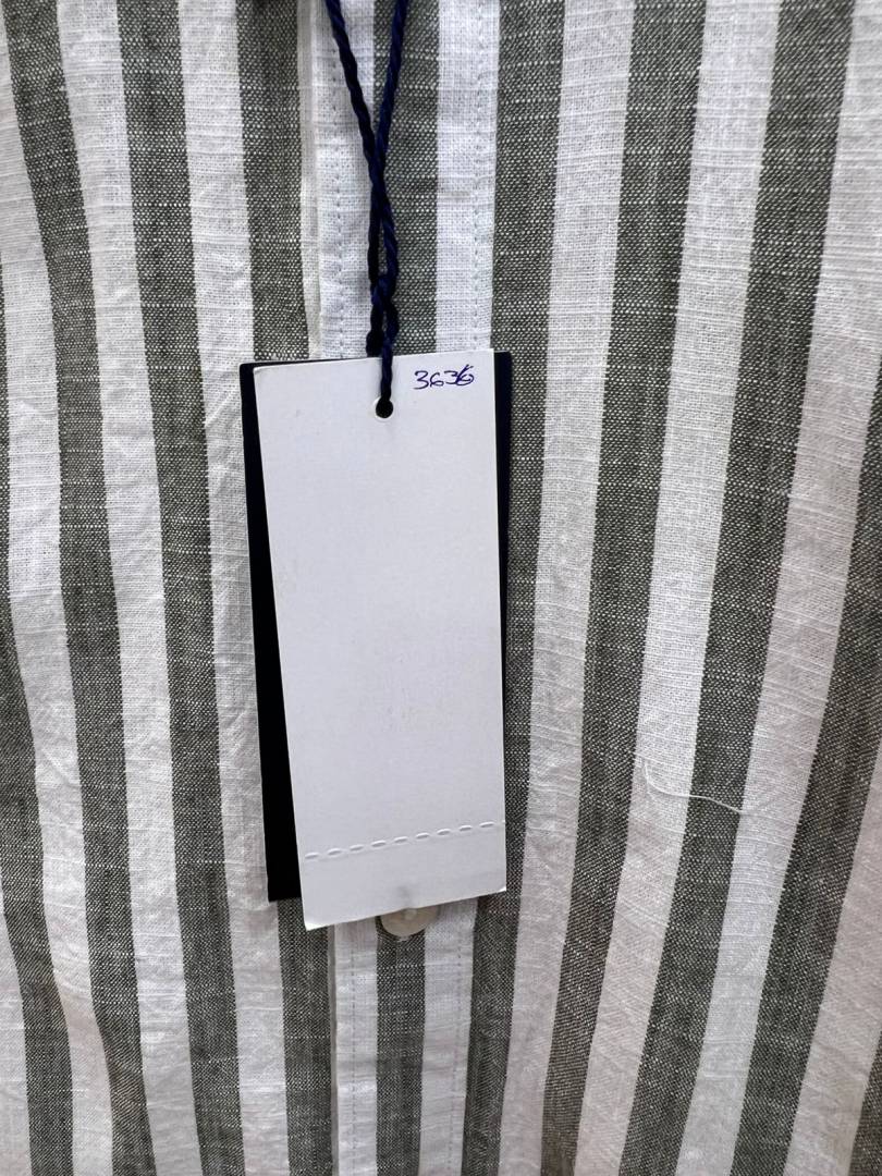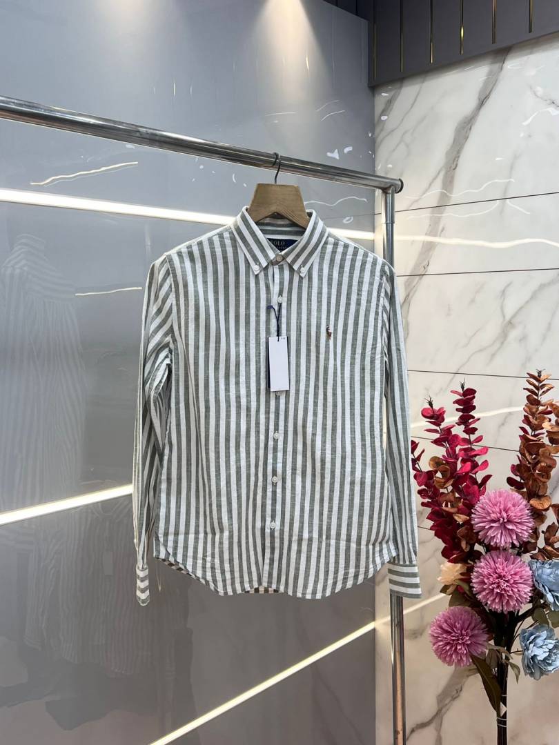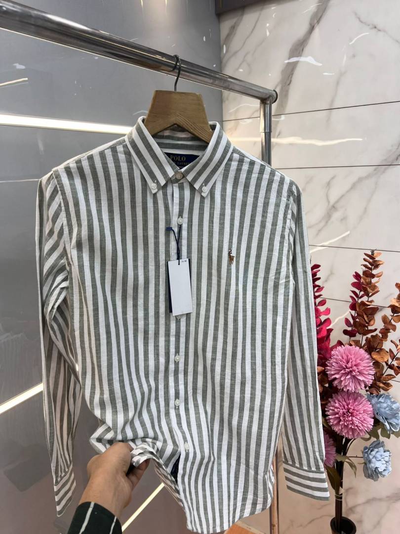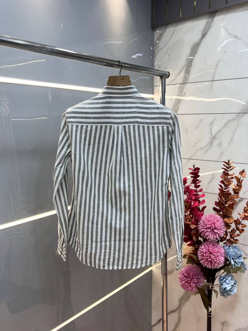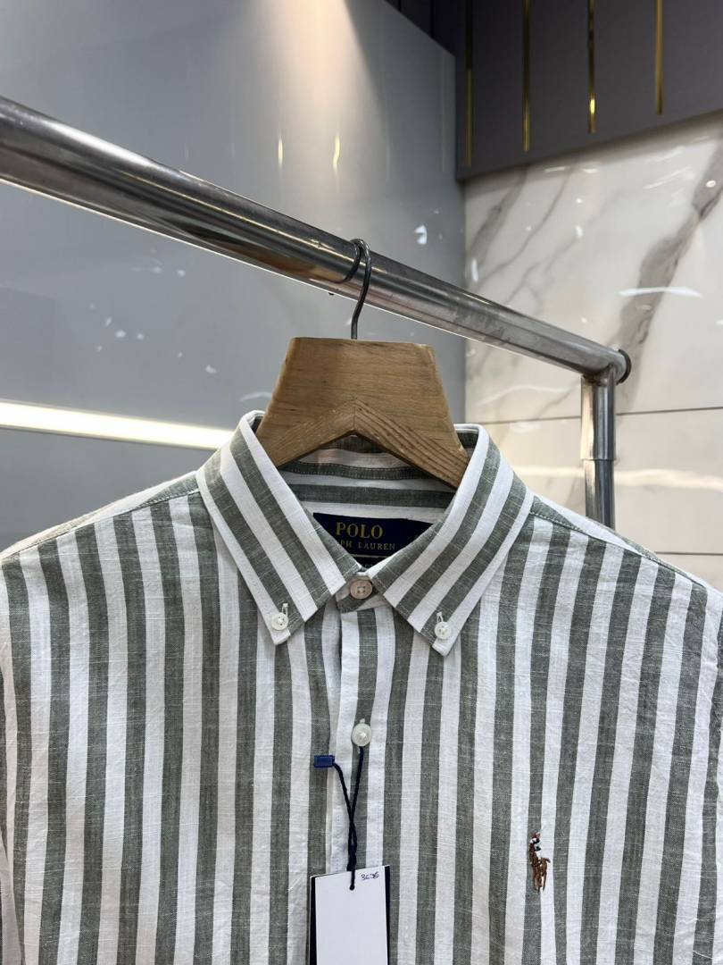 Ralph Laure n Green Premium Imported Cotton Linen Fabric Shirt with Strips and Embroidered Logo 3636