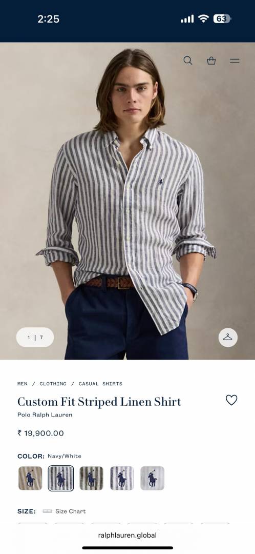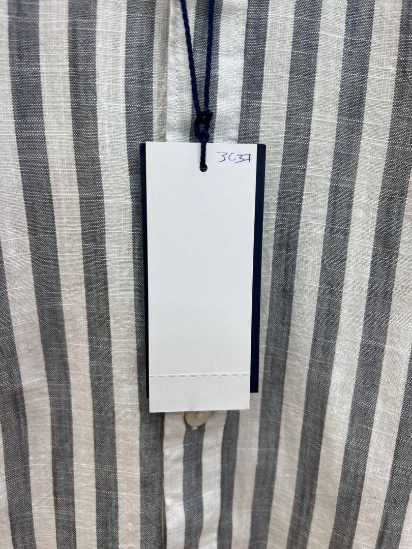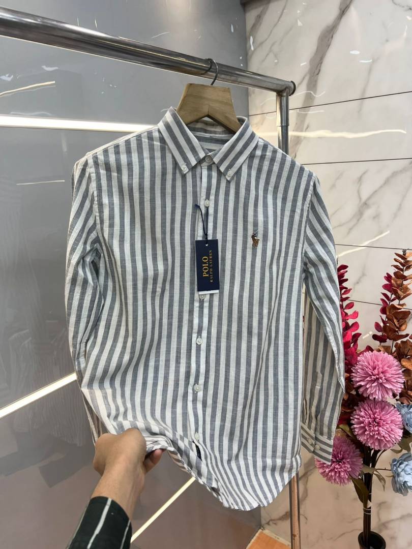 Ralph Laure n GREY Premium Imported Cotton Linen Fabric Shirt with Strips and Embroidered Logo 3637